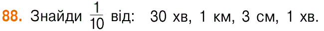 Trova 1/10 di: 30 min, 1 km, 3 cm, 1 min.