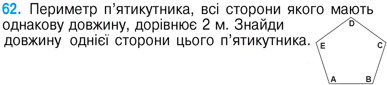 Il perimetro di un pentagono, i cui lati hanno tutti la stessa lunghezza, è 2 m. Trova la lunghezza di un lato di questo pentagono.