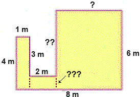 ? = 8 m - 2 m - 1 m = 5 m ?? = 6 m - ??? ??? = 4 m - 3 m = 1 m ?? = 6 m - 1 m = 5 m P = 1 + 4 + 8 + 6 + 5 + 5 + 2 + 3 m = 5 + 14 + 5 + 5 + 5 m = 34 m |