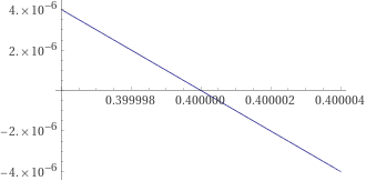 plot x^500 - x + 0.4, 0.399996 < x < 0.400004